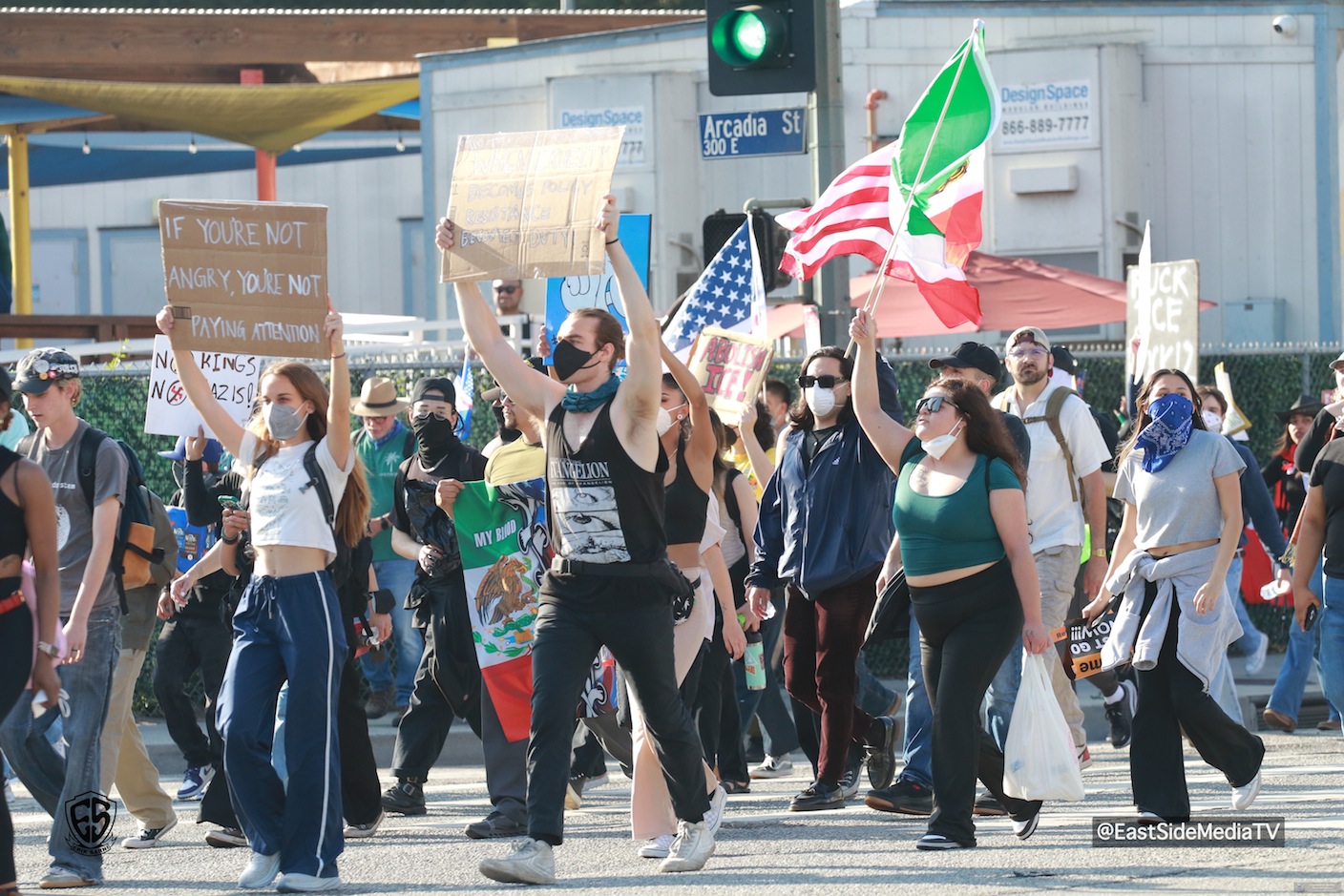 Protesters gather in downtown Los Angeles over ICE immigration raids in the city.
